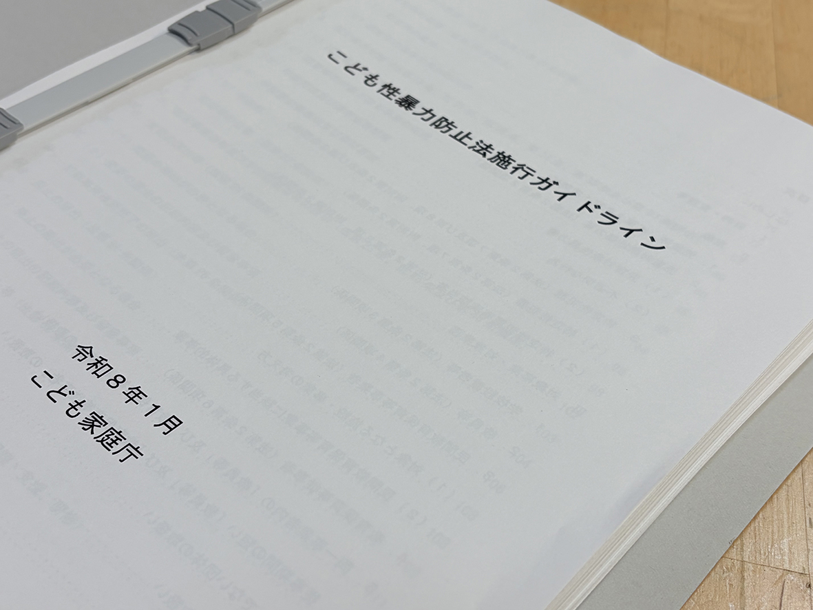 所管官庁から「こども性暴力防止法施行ガイドライン」が送られてきました。印刷すると340Pあります。教員による性被害など、子どもへの性暴力は許さない機運を醸成しないといけません。また、私のような職業は、事業者マーク(こまもろうマーク)を取得する必要があります。それにはまず、このぶ厚い資料を読むところから始めます。