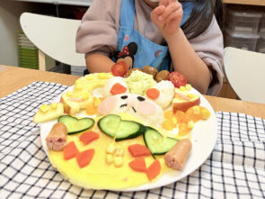 児童養護施設の子どもたちとキャラ弁作りのレッスンをしました。このピカチュウを作った男の子。最初は不安から「作らん、(白丸の)おにぎりでいい」と作らない言い訳をします。でも、「安心して、大丈夫やで」と声かけをして、気分をほぐしていくと、最後にはご覧のモリモリに元気なキャラ弁を作りました。