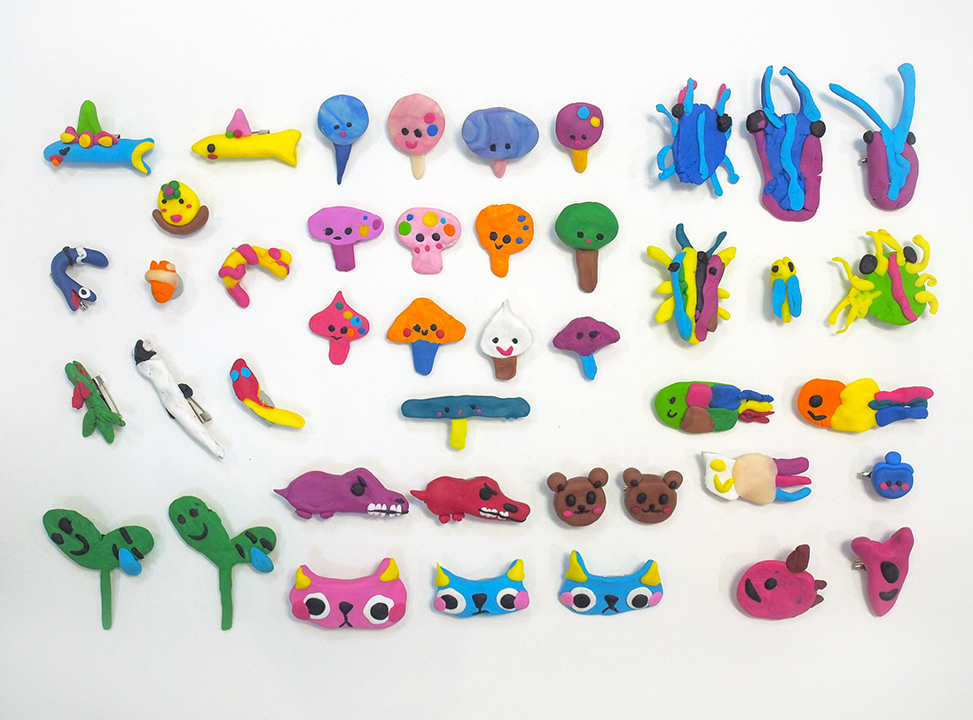 9月です。秋の気配を空に空気に感じます。子どもたちの成長の軌跡である商品をご紹介します。自分で創作したキャラクターをピンバッジにしました。ラベルも自分でデザインしました。ご覧ください。