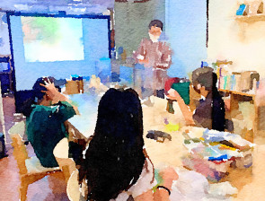 もっと話してコース。最初にアイスブレイクのトーキングゲームをしました。カードの指示に従って1分間、最近あった出来事を話すゲームでした。ルールでは、発言中に必ず「しかし」を入れて話します。相手の理解を促すために比較することで話題の位置づけを明確にします。