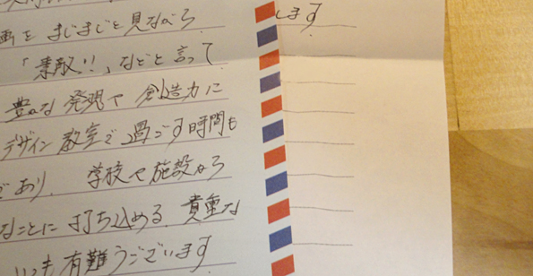 メール全盛の昨今、お手紙を頂く機会が少なくなりました。そんな折、施設の保護者の方から、素敵なお手紙を頂きました。