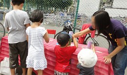 「南田辺にんやかまつり」というフリーマーケットに参加しました。たくさんの子どもがゲームを楽しみ、大盛況でした。