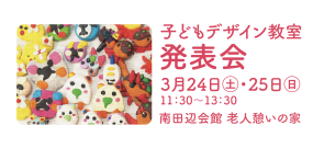 子どもデザイン教室のこの1年間を締めくくる発表会を開催します。ご家族、ご友人お誘い合わせのうえ、お楽しみください。