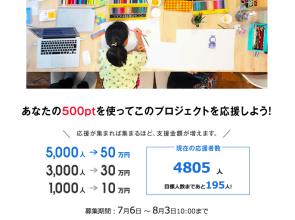 「マイ大阪ガス」に登録して「子どもデザイン教室に応援する」をクリックすると、親と暮らせない子どもたちを支援する「子どもデザイン教室」に、50万円が大阪ガスさんから寄付されます。あと195人になりました。