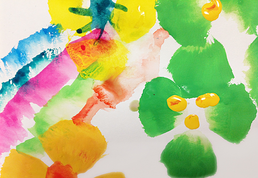 デザイン教室、今回はパフォーマンスを重視したレッスンにしています。しかし高学年になればなるほど抽象が苦手で、意味のある絵を描こうとします。その背景に、うまく見せたい、はずかしいと誤解している、という問題があるようです。