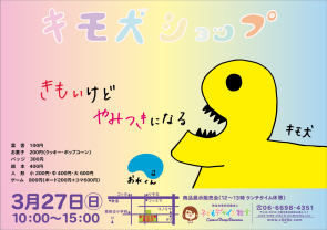 12月のレッスン「ポスターをデザインしよう」の作品「キモ犬ショップ」です。キモカワのキモ犬がやみつきになるお店です。