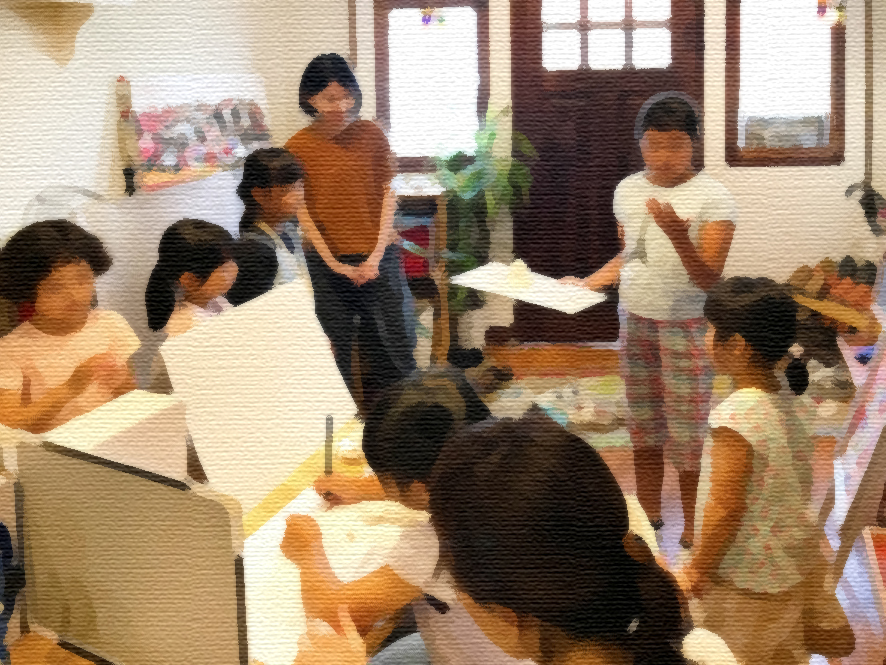 創造デザインレッスン。くじ引きで引いたお題を制限時間内に作り、それが何かお互いに当て合うゲームをしました。時間内に仕上げること、創造的に物事を発想することを楽しいゲーム感覚で会得しました。皆とてもうまく表現できていて、高得点のバトルに私たちもエキサイトしました。