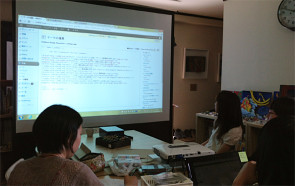 今期、子どもデザイン教室がもつ課題の一つは「次世代への技術移転」です。そこで毎週土曜日の昼から、デザイン技術の勉強会をしています。今日のテーマはワードプレス(オープンソースのブログソフトウェア)です。