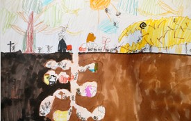 将来、漫画家希望のNくんとTくん、果たして世の中に黒色の影はあるのか?実験してみました。Tくんはすっかりおとなの頭になっていて、ガチゴチの線を描くので、どうすれば子どものような線が描けるのか?実験しました。