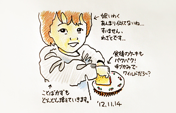 毎日のごはんをとても楽しみにしてくれます。ごはん前は『マンマたべよ♪』と楽しそうに歌っています。あんまり食べ過ぎて、途中でもどしてしまっても、またおかわりして完食します。今の時期は気の済むまで食べることが大事だと思うので、『安心していいよ。いっぱい食べようね!』といってあげています。