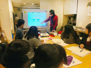 今期の集大成として、今後20年の人生デザインを発表するロールプレイをしました。その他、人生講義や書き初め、ピンバッジ作りなど、多彩なレッスンを織り交ぜ、楽しみながら自分の人生をデザインしていきました。