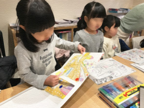 お絵描き・立体で創作の喜びを楽しむ「造形工作レッスン」。いよいよ、すごろくのコマとサイコロを作って完成!かと思いきや、それぞれにこだわりあり、アイディアありで、なかなか終わらず、次週に持ち越しの子多数です。地図からどんどん世界が広がりますね!
