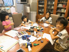 一方、男の子は空気鉄砲作り。こちらは無言。。。普段は担当しない造形工作レッスン。今回は代役で講師をすると発見一杯。教室の新基軸に育ち始めた造形工作レッスン、来年は2レッスンに増やす予定です。ご期待ください〜