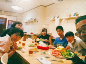 子どもたちは朝からずっとアルバイトをして、お昼ごはんを一緒に食べて、そして夜は人生レッスンを受けました。夕方になって「なあ。今晩、何にする?」と子どもらに聞いたとき、「ここ、何だか、家みたいになってきたやな〜」といって笑いました。ええ方向に進んでいます〜