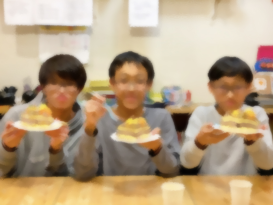 議論の最後は予想通り国語が選ばれました。母国語学習の必要性に皆納得していました。後半は予定を変えてクリスマスケーキを作りました。ゴージャスなケーキを1/4も食べられると大喜びの3人、来年3月末の発表会に向けてレッスンはヒートアップさせないといけません。