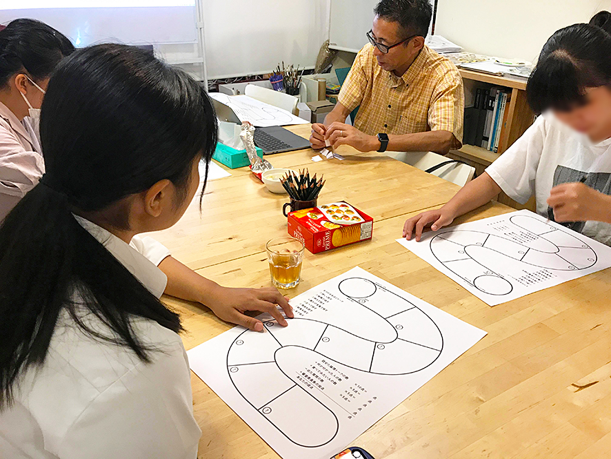 持てる資源を活用しています。子どもの課題は子どもと作るのが一番だろうと、高校生の意見を反映させながら教案を作っています。食いつきのよい教材は何か?と考えていたら、一緒いた小学生がやたらとすごろくに食いつくので、すごろくをヒントに「論理すごろく」を作ってみました。