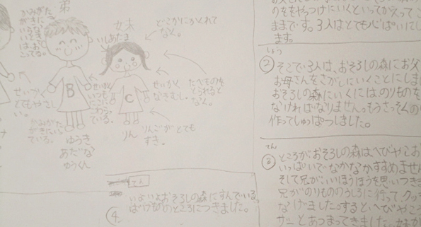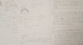 超激辛ソースのキャラクター・デザイナー、Yちゃん(小3)が新作の絵本に取り組んでいます。まだ草稿段階ですが、ある家族の物語を紡いでいます。スケッチブックに絵や文章をきっちり書き込んでいます。絵本の朗読など1時間みっちり楽しんだ後、はなまるの笑顔でおやつをほおばっていました。