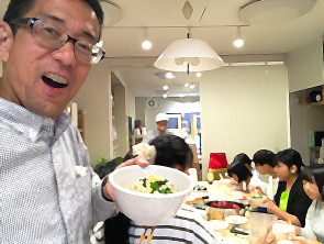 教室、週末の夕食は蕎麦打ち職人・島津の山菜そばと細巻きずし。その後、中学生は似顔絵師、ひこさんをお招きして似顔絵の練習。高校生はコンピュータレッスンをしてから、キンチョウスタジアムの現地視察、と称してなぜかヤンマースタジアムで試合観戦。大盛り上がりでした。