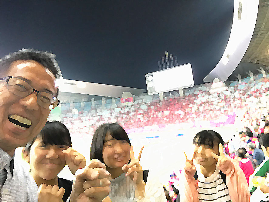 教室、週末の夕食は蕎麦打ち職人・島津の山菜そばと細巻きずし。その後、中学生は似顔絵師、ひこさんをお招きして似顔絵の練習。高校生はコンピュータレッスンをしてから、キンチョウスタジアムの現地視察、と称してなぜかヤンマースタジアムで試合観戦。大盛り上がりでした。