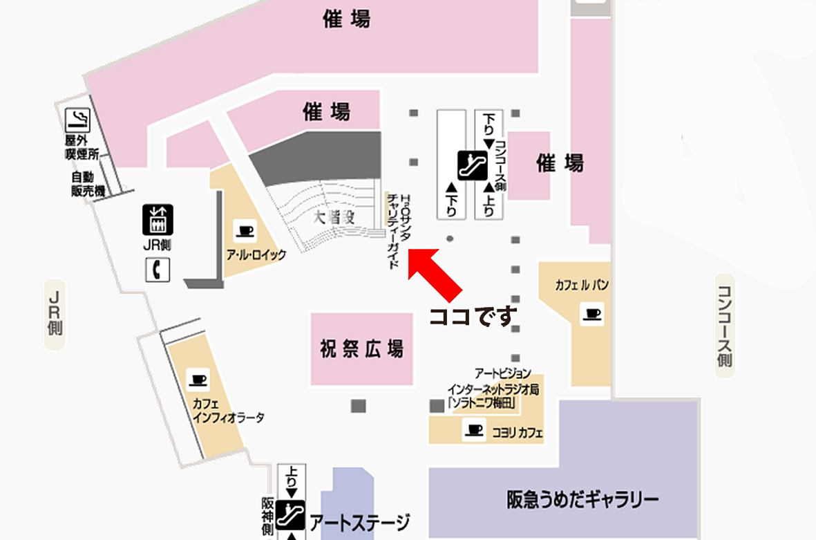 【募金箱設置のお知らせ】阪急うめだ本店9階「祝祭広場」のH2Oサンタコーナーに「子どもデザイン教室」の募金箱が設置されました!期間は12月9日までです。Xmasのお買い物は阪急へ〜、ついでに9階の募金箱へ〜、よろしくお願いしま〜す!