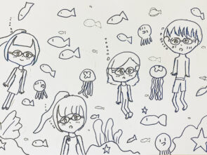 発表会で発表する絵と文を交互に進めます。今日は絵を描く日。絵本の推薦文の主張を論理的に裏付ける自分の経験を絵にします。その工程を通して自身を内照し、発表文を書き易くします。描画技法を指導するとさすがです。大きく構図された見応えのある下描きを描きました。