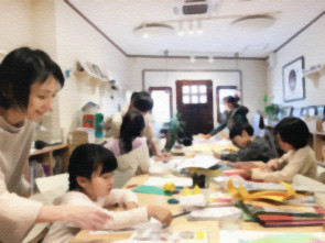 11月の幼・小学生向けレッスン。秋の工作の続きです。教室に大きなフィルムを貼り、そこに大きな木の工作を作りました。そして皆が作った秋の生き物をドンドン貼っていきました。単に作るだけでなく、動きのあるレッスンになり、皆の笑顔が楽しいレッスンになりました。