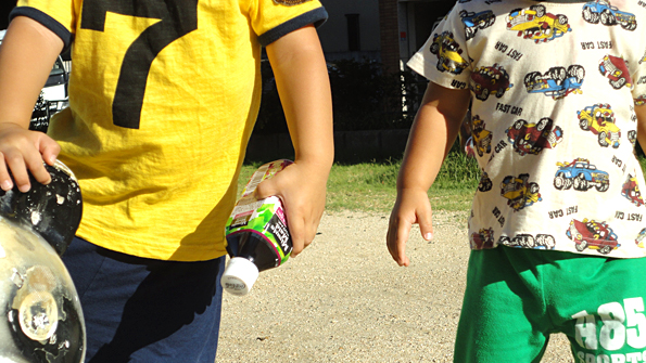 ちびっこ2人をつれての保育所への送迎(往復4時間)が大変です。一人は『抱っこして〜!』(へばりついて離れません)の連呼。もう一人は商店街で傘を振り回して大騒動。お店に入ると、陳列の商品がバラバラ〜!さすがに怒ると、大の字になってピー!パチンコ屋さんのPOPもへっこみました。パチンコ屋さん、ごめんなさい。でも、結構この状況を楽しんでいます。(イメージ写真です)