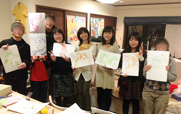 クリスマス直前のレッスン。いつもと趣向を変えて、全員で順にみんなの顔をスケッチしあって、そのスケッチにメッセージを添えてプレゼント交換しました。手描きの絵や文字はどんなものよりも暖かいですね。