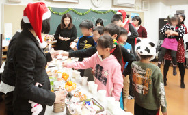子どもデザイン教室のクリスマス会が終わりました。ボランティアの方にご参加頂いて、かわいいサンタのいなしずしやスイートポテトなど、たくさんのお料理を楽しみました。缶蹴りやフルーツバスケット、トランプをして遊びました。