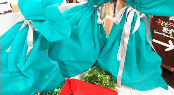 今日は子どもデザイン教室のクリスマス会・第1弾の日です!プレゼントの準備も万全!そろそろお昼ごはんの仕込みを始めます!