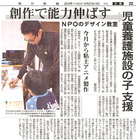 昨日の毎日新聞大阪版・朝刊に子どもデザイン教室をカラーで大きくご紹介頂きました。児童養護施設の関係者さんに読んで頂いて、『これはうちの子も通わせよう!』と思って頂けないかな〜と思います。「春の日パーティ・パート2」をしました。