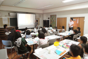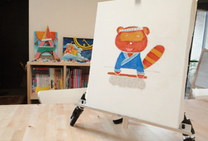 大阪府の高校からインターンシップの学生さんがきています。ひとつひとつ言ってあげないと行動になりませんが、言ってあげるときっちり成し遂げてくれます。今日は子どもたちが創作したキャラクターを油彩画で描いてもらいました。
