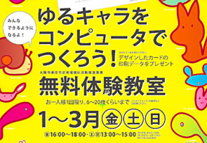 来年1〜3月、東住吉区の地域福祉活動推進事業の助成を受けて「無料デザイン教室」を毎週金・土・日曜日に開催します。対象は東住吉区内の小・中・高・大学生です。学校にいっていないお子さんもお越しください。お問い合わせはTEL06-6698-4351まで。