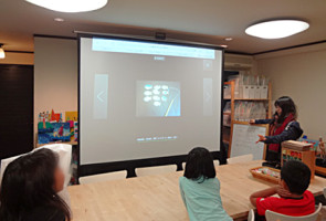 新しいカリキュラム、つりゲーム(まだいいネーミングが思いつきません)をはじめました。まずはゆっこさんからレクチャーです。スクリーンの配置を変えてとても見やすくなりました。つりといっても魚と決まったわけではありません。何をつるのか?