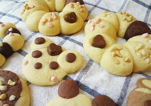 5月からの新しいレッスンの練習で、クッキー作りをしました。講師は私の高校の教え子さんです。自分が食べるのではなく、人に食べてもらえるクッキーを作ろう!というテーマです。クッキーができたらその名前と値段をつけます。