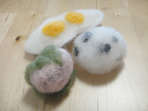 子どもデザイン教室、6月のレッスンは「お人形を作ろう」です。ファイバーアートが大好きな高3のKちゃんは食べ物シリーズも作っています。桜餅や目玉焼き、ほかにも豆大福、おたべ、どれも優しい風合いでおいしそうです。