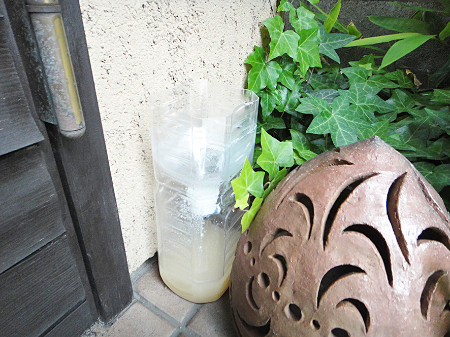 フィリピンの蚊取りボトル。やってみたけどアリンコしかとれない。レシピ通り作ったんだけど、、、なにが悪いんだろう?娘からは『美観を損ねる』とクレーム。スタッフは『蚊は飛んでますけどねええ〜』と皮肉、、、