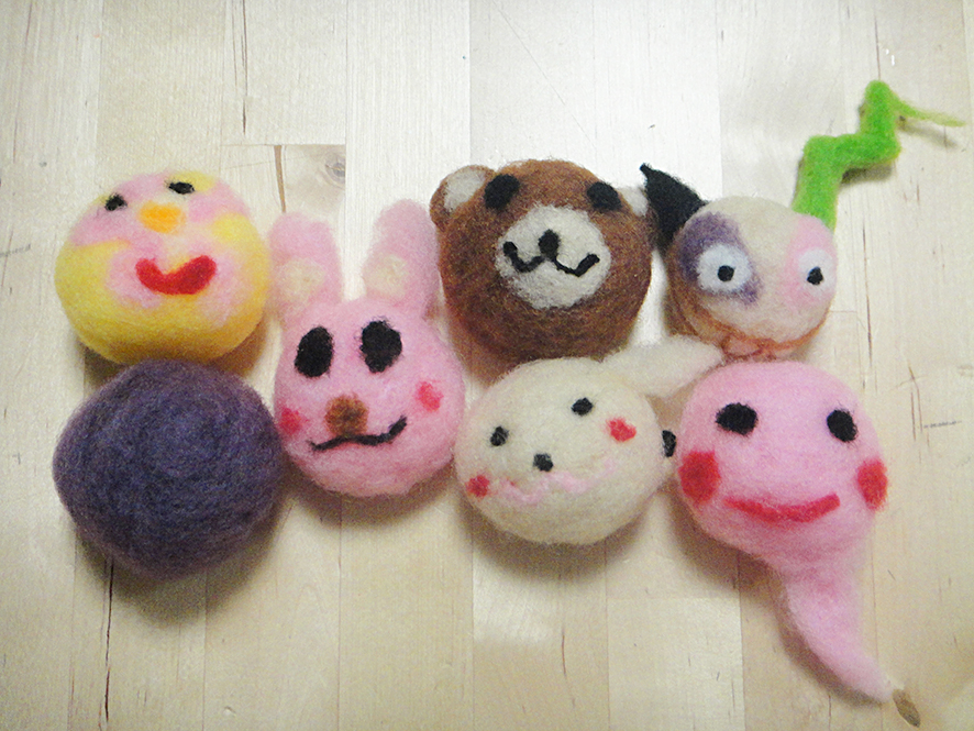 子どもデザイン教室、6月のレッスンは「お人形を作ろう」です。ファイバーアートが大好きな高3のKちゃんは食べ物シリーズも作っています。桜餅や目玉焼き、ほかにも豆大福、おたべ、どれも優しい風合いでおいしそうです。