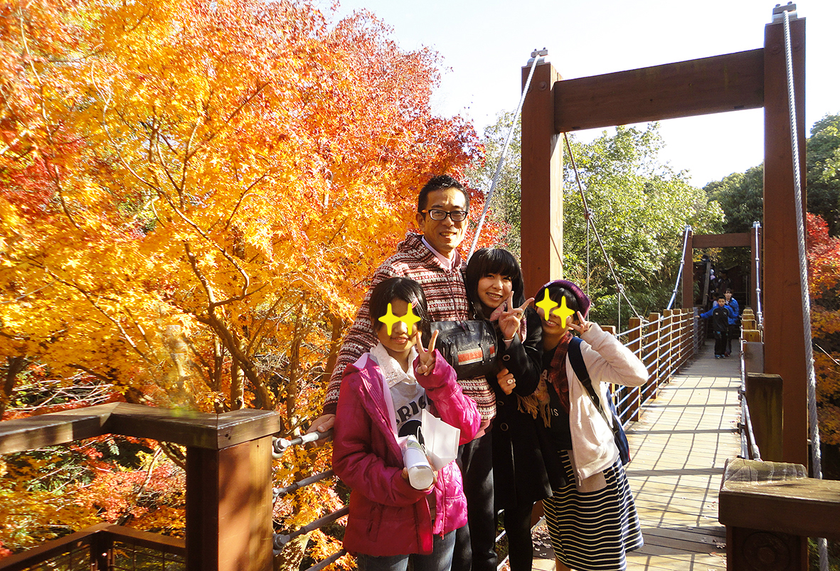 ふ、ふ、ふ、また自慢です。外泊の女の子と家族で万博公園へにいきました。上から2番目の娘は不参加でしたが、お天気に恵まれて、紅葉を楽しんで、紙飛行機・誰が一番か選手権をして、民族学博物館を見て、門限の8時ぎりぎりまで幸せな1日を過ごしました。