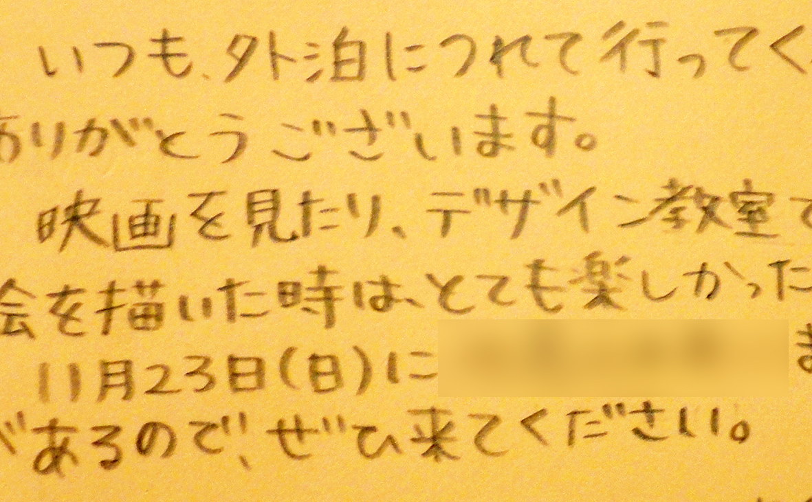 ふっ、ふっ、ふっ、自慢話です。週末里親と言うか、ほとんど月末里親もしています。その子からお手紙が届きました。宛名の「和田さんへ」の文字に距離を感じますが、嬉しいものです。彼女も来春には家族に一員になります。ふっ、ふっ、ふっ、です。