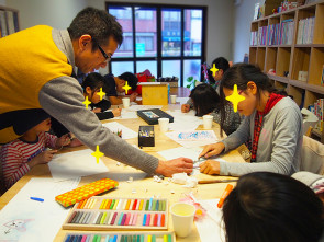 大阪市立デザイン教育研究所の新科目「キッズデザイン」が始まりました。開催場所は子どもデザイン教室。この授業は、551蓬莱協賛の「こどキャラレッスン」という児童養護施設で暮らす子どもたち向けの〈絵本教室〉を、研究所の学生と協働で実施するユニークな授業です。