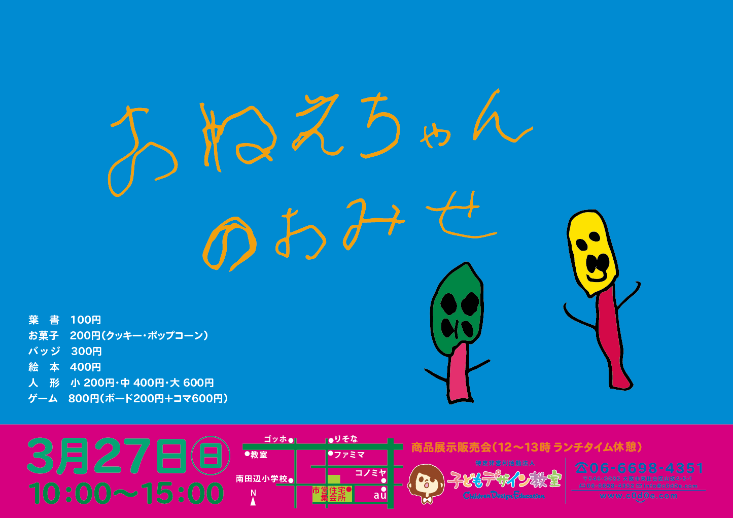 12月のレッスン「ポスターをデザインしよう」の作品「みゆちゃんショップ」です。メルヘンチックな保育園の女の子のお店です。