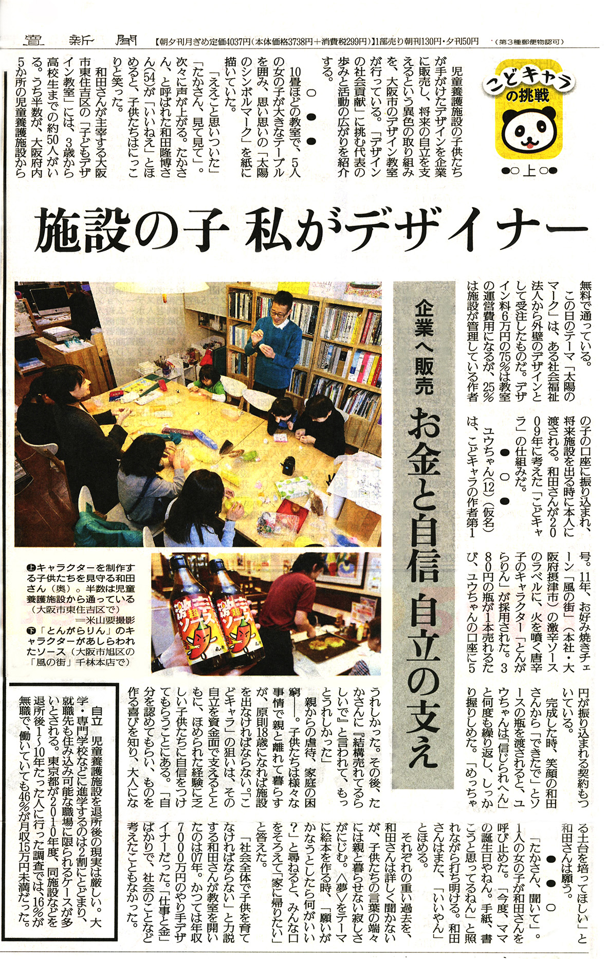 子どもデザイン教室の活動が、昨日から3日間、読売新聞夕刊で連載されます。題して「こどキャラの挑戦」です。親と暮らせない子どもたちと創作したゆるキャラのソーシャルビジネスが紹介されます。