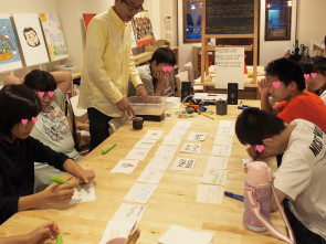絵本作り、ようやく全体の構成案が完成し始めました。ご紹介するのは、土曜日高学年の案です。仲間ができないニジコウセキはお豆さん兄弟やキノコの子を食べようとします。それを助けるのがヘビのニョロニョロや細菌ピロリ。