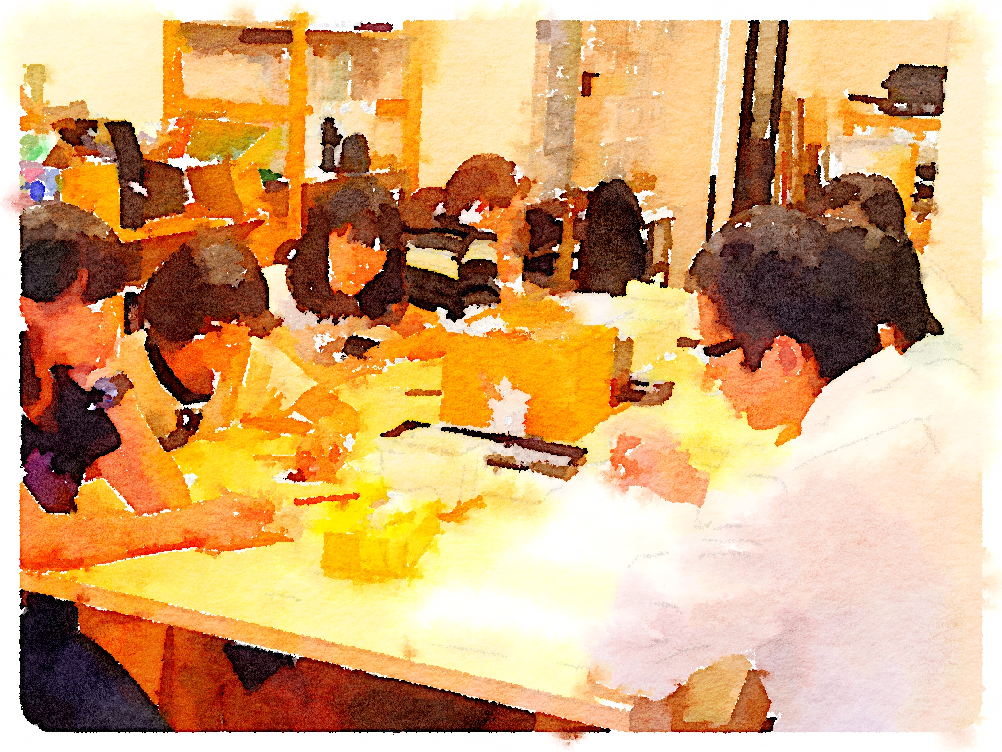 絵本作り。辻褄合わせの最終修正作業をしています。ここが難しい所で、あまり手を出すと指導者の絵本になります。放任だと意味不明な絵本になります。子どもたちにアイデアを活かしながら、物語を編むように、まさしく編集作業が続きます。