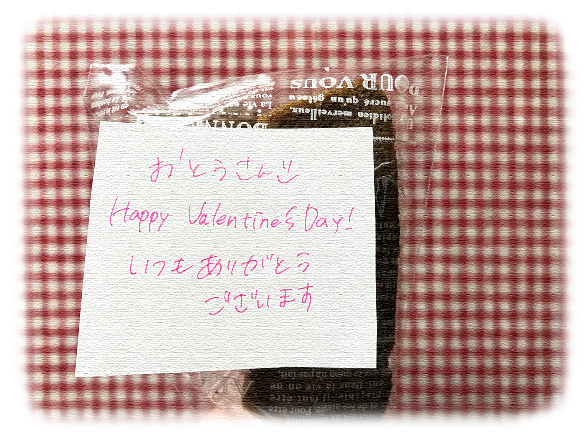 バレンタインのおすそ分け。このビミョーな距離感のメッセージ。しかし、私としてはこの一行目だけでホクホク嬉しいものである。