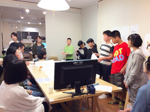 キンチョウスタジアムで商品販売を考え、その利益を寄附する社会体験型「イベントデザインレッスン」。5月はレッスン「いざ、代表プレゼン!」をしました。練りに練った案も、私や高校生へのプレゼンで、不備を一杯指摘されて。。。中学生たち、相当ショックな様子です〜
