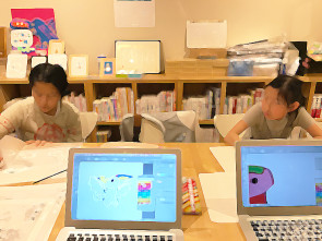 オリジナルキャラクターグッズを自分で作って売る小学生・中学生向け社会体験型デザイン教育「グッズデザインレッスン」。5月はレッスン「葉書をデザインしよう」をしています。先月出来上がったキャラクターをモチーフにコンピュータで葉書のデザインをしています。