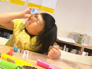 造形工作レッスンでは、迷路作りをしました。壁をのばしながら作る迷路に挑戦です。平面で基本ルールを学んだら、いよいよ本番です。迷路そのものの複雑さだけではなく、ビー玉の動きも考えて、みんな工夫をしながら、難易度の高い迷路を作りました。