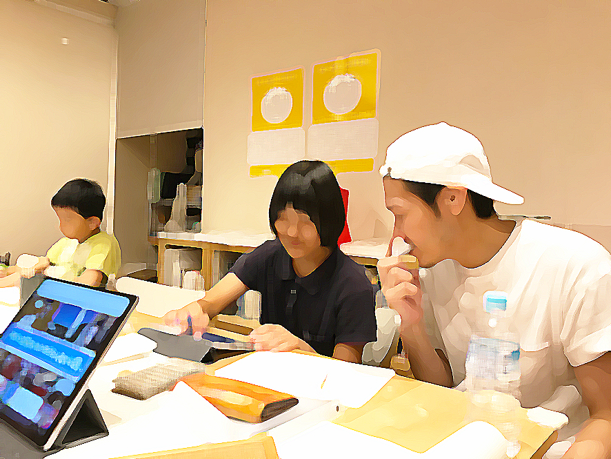 7月8日の似顔絵うちわ実演販売会「うちはにがおえやさん」にむけて、皆で作業を分担して進めます。ポイントはモレなくダブりなく、MICEに業務を分解できるかです。当日起こりうる問題も考えて企画の具体化を図っています。
